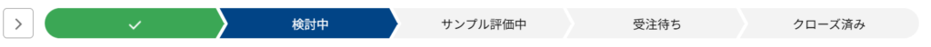 - 進行中の商談 = 初回打合せ前, 検討中, サンプル評価中, 受注待ち