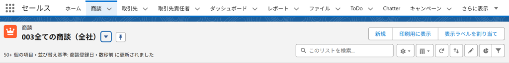 - 進行中の商談のみ表示したい場合は「005進行中の商談(自分の担当商談)」をクリックします。