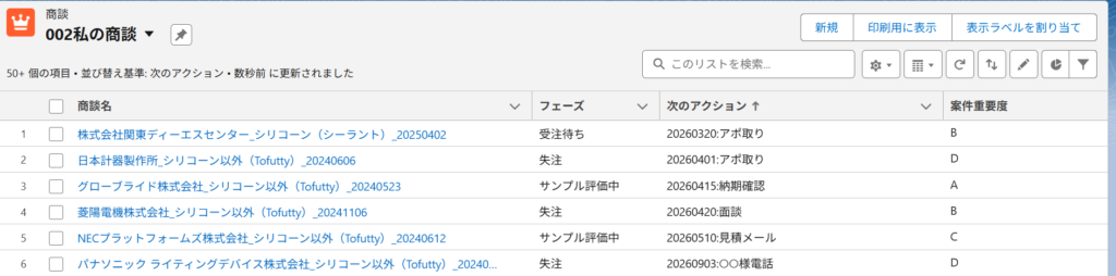 👉 「次のアクション」が空欄=放置状態の可能性あり。