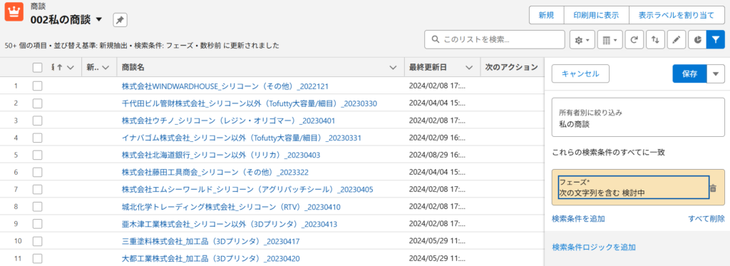 - 条件に合う商談だけが表示されます