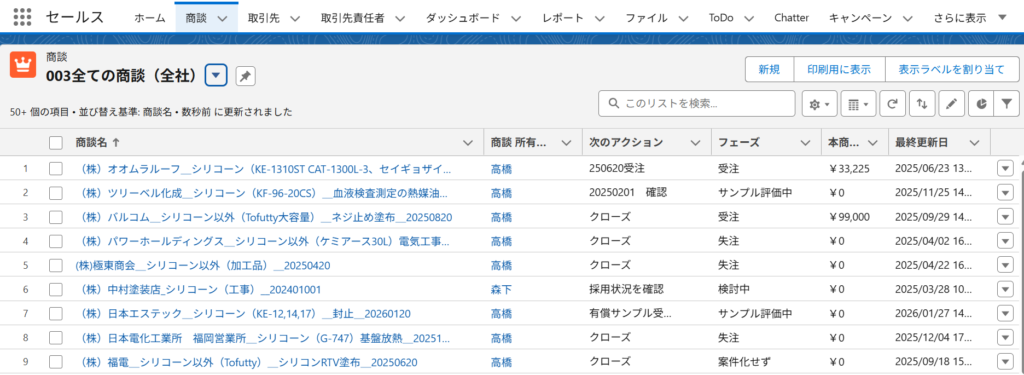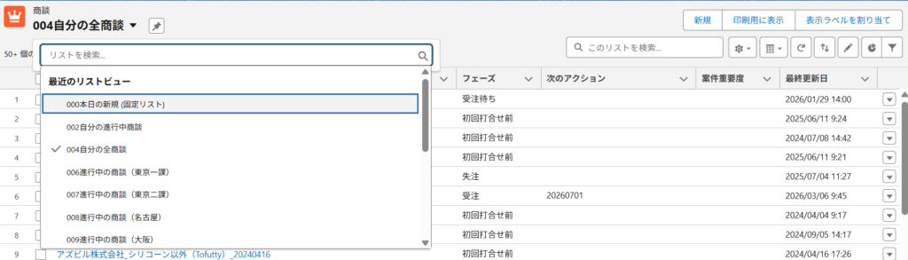 商談の一覧画面(リストビュー)を使って、