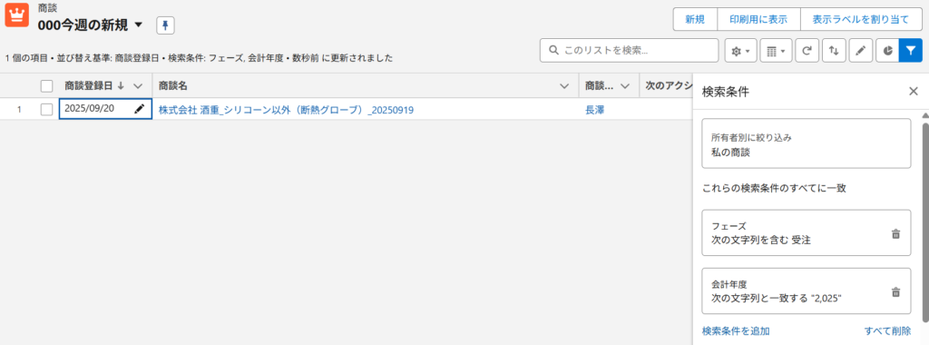 まず、受注した商談を表示します。